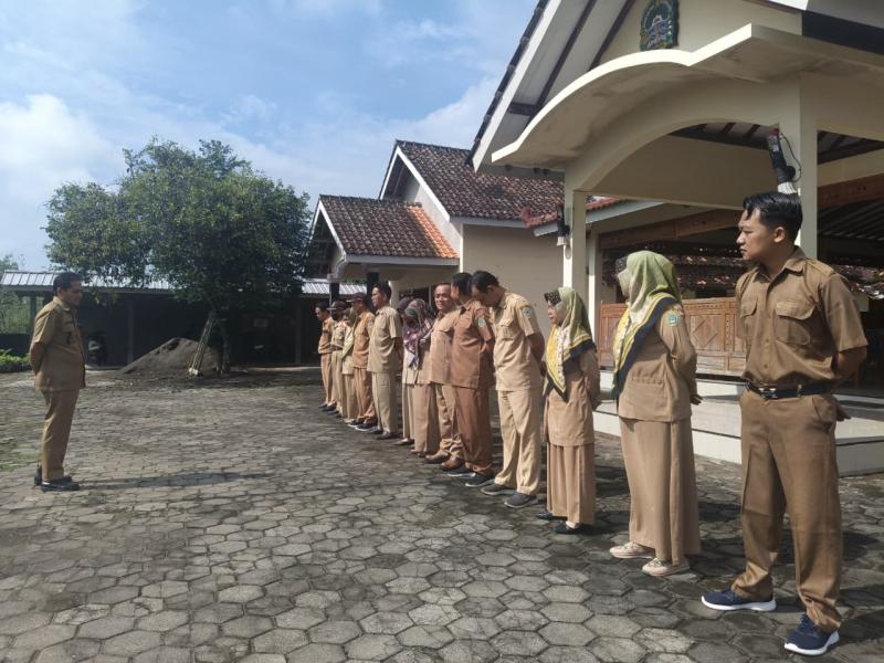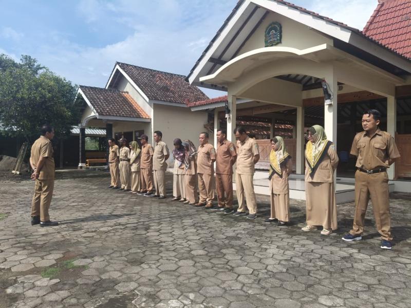 Apel berlangsung dengan tertib dan diikuti oleh seluruh pamong Kalurahan Wunung di halaman balai kalurahan.