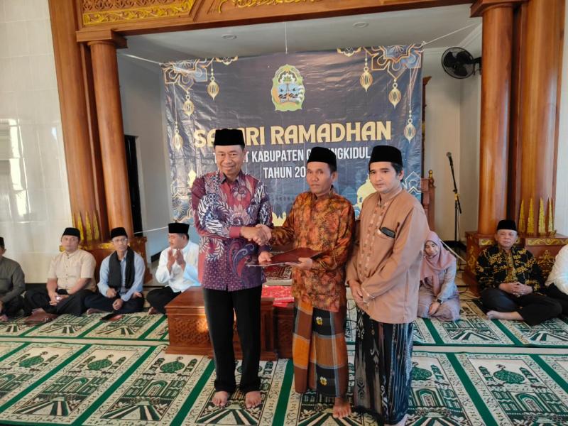 Wunung - Kegiatan Safari Ramadhan tingkat Kabupaten Gunungkidul Tahun 2026/1447 H yang digelar di Masjid Nurul Iman, Padukuhan Kamal, Kalurahan Wunung, Kapanewon Wonosari pada Kamis  (12/3/2026) berlangsung dengan aman, tertib, dan penuh kebersamaan.
